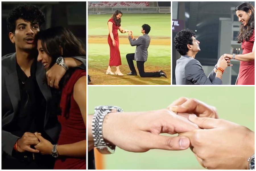 वीडियो में देखा जा सकता है कि पलाश स्मृति को स्टेडियम लेकर आते हैं, जहां उनकी आंखों पर पट्टी बंधी होती है। जैसे ही पलाश पट्टी हटाते हैं, स्टेडियम की खास सजावट और माहौल देखकर स्मृति एकदम हैरान रह जाती हैं। पलाश घुटनों के बल बैठकर उन्हें फूलों का गुलदस्ता और अंगूठी देतेहैं। यह दृश्य किसी फिल्म के रोमांटिक क्लाइमैक्स जैसा लगता है।