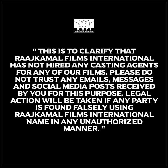 फर्जी कास्टिंग कॉल को लेकर राजकमल फिल्म्स इंटरनेशनल ने जारी ...