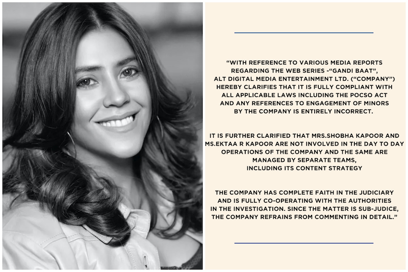 पोस्को एक्ट केस में एकता कपूर ने स्टेटमेंट रिलीज़ किया