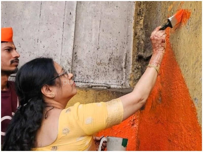 बीजेपी सांसद मेधा कुलकर्णी का भगवा रंग विवाद: दीवार पेंट करन...