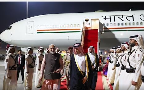 यूएई दौरे के बाद दोहा पहुंचे पीएम मोदी, कतर के अमीर से बातची...