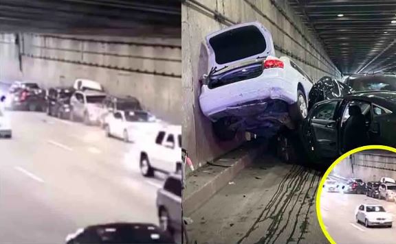 क्षण भर में लग गया कारों का ढे़र, टेस्ला एस ने बे ब्रिज पर अ...