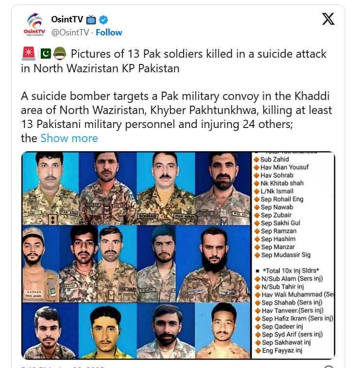 पाकिस्तान में TTP का आत्मघाती हमला, 13 सैनिक मारे गए, जानिए ...